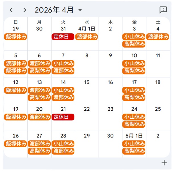 2026年4月の定休日
